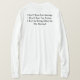 I love this shirt. I had written to the artist asking her if this picture was available on a shirt, and she wrote me back telling me where I could find the shirt. These shirts can be custom made to have a different saying. I loved this saying and went with it. The artist wrote me back later to tell me that she had seen my order go through. How's that for service? Pretty special. It's just as displayed. Perfect!