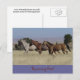 A trio of beautiful horses runs across the high plains of Wyoming prairie. The words beneath say "Running Free!"