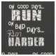 On Good Days Run - On Bad Days Run Harder motivational running quote for long distance, full or half-marathon runner. Proper mindset is essential to reach our race goals. >> Gift idea to motivate runners training for 5k, 10K, Cross Country, Track and Field, Trail runs, or marathons. >> Customisable artwork. Add YOUR OWN personal name or custom message. Click "Personalise" and create your own custom text, add a background shape, graphic, etc. to make your final design.