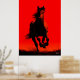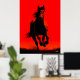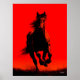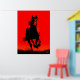 Celebrate strength and freedom with this striking horse poster. A galloping black silhouette bursts forward on a bright red background, radiating movement and raw power. Perfect for animal lovers, modern interiors, or as a bold statement piece in any room.