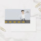Retro style male chef business card; he's wearing a chef coat or jacket, carrying or delivering a domed platter full of delish food. Bottom of card is a road, and he's running on it for your food delivery or catering business.