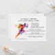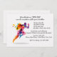 A silhouette figure of a running man composed of multi-coloured dots which leave a trail behind him used to represent speed and energy. A unique invitation for your athlete's celebration.