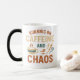 Fuel your day with a dose of caffeine and a splash of chaos—just like this mug promises. Featuring bold retro typography, swirling steam, and lightning bolts, the “Running on Caffeine and Chaos” mug is made for those mornings when you’re barely holding it together (but still doing it in style). Perfect for your desk, your couch, or your third cup before 10 a.m.