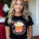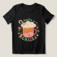 Christmas North Pole Social Club Reindeer Festive Holiday Tri-Blend Shirt features the text "Running On Coffee & Christmas Cheer" in modern red and green script typography with a festive mug of coffee, candy canes and gingerbread people. Perfect for Christmas gifts, Christmas parties and holiday celebrations, birthdays and more. Created by Evco Studio www.zazzle.com/store/evcostudio