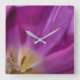 Immerse yourself in floral joy and convert your life to tulip time with this beautiful square acrylic wall clock. The image is of a tulip in bloom by photographer J. Mummey.