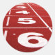 Round Stickers with a photo design of a running track start numbers. Customisable.