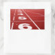 Rectangle Sticker with a photo design of a running track start numbers. Customisable.