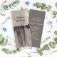 Invite guests to your upcoming relaxed and rustic marriage ceremony and reception with the charming Rural Fence Post Country Ranch Wedding Invitation. This casual yet classy custom western nuptial invite features a quaint black and white farm style photograph of a weathered wooden fence post with barbed wire. Perfect inspo or idea for your informal barn party celebration event. Available as a printed invitation for mailing or as a digital download for easy sharing digitally online.