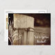 Set a relaxed and rustic tone for your marriage ceremony and reception with the charming Rural Fence Post Country Western Wedding Save the Date Announcement Postcard. Personalise it with the names of the couple, wedding date and photo. This casual yet classy custom ranch style nuptial keep the date photocard features a quaint black and white sepia tone farm photograph of a wooden fence post and barbed wire. The San Telmo filter has been added for additional effect. Feel free to remove or replace it to suit your individual needs.