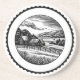 A stylish coaster design featuring a rural landscape