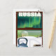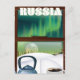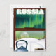 Russia Cost Hut in the snow, cartoon Russian travel poster.