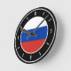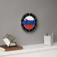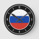 Russia Flag Elegant Round Clock with the Russia flag positioned in the middle and lovely white clock numbers on the clock edge. Delightful black background with the white oval elements finalize the design putting emphasis on the elegance. Beautiful combination of black and white with the skillful integration of the national flag colors make this clock the perfect gift and the great show piece on the wall. © CountriesOfTheWorld
