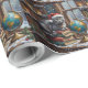 Russian Blue Cat Christmas Library Reading Nook Wrapping Paper