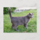 Russian Blue Cat On Grass - Postcard Lola Kitty