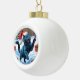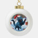 Russian Blue Cat Running Snow with Christmas Hat Ceramic Ball Christmas Ornament