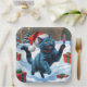 Russian Blue Cat Running Snow with Christmas Hat Paper Plate