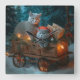 Capture the magic of a winter wonderland with this enchanting Christmas design. Featuring a wooden cart nestled in a snowy scene, this decoration brings holiday charm to any setting. Embrace the spirit of the season with this delightful addition to your decor.