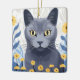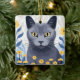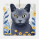 Russian Blue Cat Yellow Flowers Ceramic Ornament