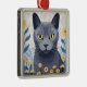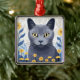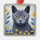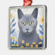 Russian Blue Cat Yellow Flowers Metal Tree Decoration