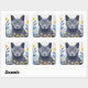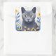 Russian Blue Cat Yellow Flowers Square Sticker