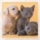 Russian Blue Kittens & Dachshund Puppies Glass Coaster