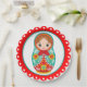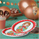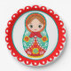 This paper plate is in red, green, yellow and white colours. The plate is designed with matryoshka, Russian nesting doll on lace background, ideal for any party celebration.