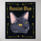 Russian Blue xat breed depicted as if on a Russian folk art box.