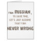 I'm Russian. To save time, Let's just assume, that I'm never wrong! Funny Russian Design for t-shirts and gift items by www.VeryRussian.com