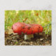 Close up of a specimen of Russula Emetica, (also known as The Sickener or Vomiting Mushroom), breaking through the ground on a woodland path