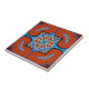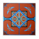 A Moroccan inspired tile design in rust tones with contrasting forget-me-not motifs