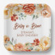 Rust Beige Floral Gender Neutral Baby Shower Paper Plate