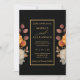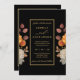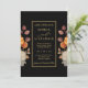 Set the tone for a romantic fall celebration with this elegant wedding invitation featuring a lush watercolor illustration of autumn blooms in warm rust and earth tones. Designed with a deep black background and a classic gold rectangular frame, the centred typography adds timeless charm and balance. Perfect for botanical, rustic, or moody fall weddings, this template is fully customisable—edit text, fonts, and colours to suit your vision. A beautiful choice for couples who love rich, natural aesthetics and refined design.