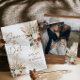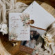 The double-sided design allows you to showcase your favourite engagement photo on the back, framed by elegant rustic accents. Perfect for desert weddings, autumn celebrations, or outdoor woodland ceremonies, this template is fully customisable.