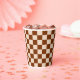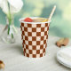 A seamless brown and beige checkerboard pattern with uniformly sized squares, creating a classic, symmetrical appearance. The design is simple and balanced.