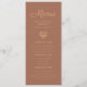 Design your own wedding reception menu with the help of our template. This elegant rust/burnt orange wedding reception menu is accented with 2 cute love birds inside an intricately designed heart. It is personalised with the names of the bride and groom and their wedding date. Contact me for help with customisation or if your personal menu doesn't fit the template provided. This menu design can be printed on the front and back of the card for no additional fee.
