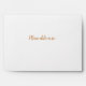 Invitation and announcement mailing envelopes with printed return address and faux copper foil effect stripe the back flap and inside.