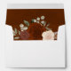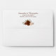 These beautiful envelopes are the perfect compliment to your wedding invitations. They are white on the outside with a pre printed return address and a small cluster of watercolor roses in shades of rust orange and coral peach. The inside is a marbled burnt umber colour with the same flowers printed on the inside flap. Perfect for a fall or autumn wedding.