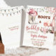 Boho Floral Western Boots and bubbly Bridal Shower Invitation, Boots and Bling Pink Bridal Shower.