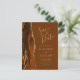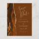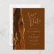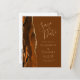 This elegant modern save the date postcard features a burnt orange and rust watercolor agate border trimmed with faux gold glitter. Easily customise the gold-coloured text on a nutmeg brown background. On the reverse side, edit the customisable return address and enter your wedding website URL to generate a QR code your guests can scan to learn more about your upcoming event.