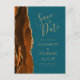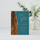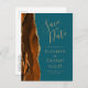 This elegant modern save the date postcard features a burnt orange and rust watercolor agate border trimmed with faux gold glitter. Easily customise the gold-coloured text on a teal blue background. On the reverse side, edit the customisable return address and enter your wedding website URL to generate a QR code your guests can scan to learn more about your upcoming event.