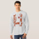 An artistic look in this abstract design created in the combination of geometric shapes in rust orange, light grey, and with dust rose elements, Pictured here on an "ash" long-sleeved t-shirt, with other colours and styles available. The design projects a vivid, warm and sophisticated quality, suggestive of tribal and modern art, as well as mosaic tile, for a versatile and trendy addition to your casual and everyday wear (whether at home, socialising with friends, playing sports, or running about town). The shirt design as "wearable art" also expresses a sense of your individualised style, contributing to a feeling of being "together" and creative in your personal wardrobe choices.