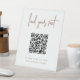 Make it easy for your wedding or event guests to find their seat with this QR code pedestal sign. "Find your seat" appears at the top, with brief instructions beneath. Enter the url for your seating assignments, and the QR code will update. Guests can scan the code to easily find their spot.