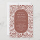 Modern leaf and flower pattern with a stylish oval framing your party information in rust and white.