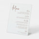 Display your wedding or event menu selections in modern style with this simple and elegant pedestal sign featuring earth tone terracotta rust lettering on a crisp white background. "Menu" or your custom header appears at the top in modern handwritten script lettering. Personalise with your menu items beneath, aligned at the right.