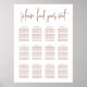 Wedding guest seating chart features your names in modern handwritten script lettering, with your wedding date and guest table assignments beneath. Space provided for up to 12 tables. Colorway: Rust, a warm earth tone terracotta brown.