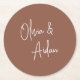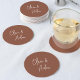 Rust | Modern Handwritten Script Wedding Round Paper Coaster