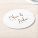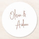 Rust | Modern Handwritten Script Wedding Round Paper Coaster
