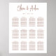 Wedding guest seating chart features your names in modern handwritten script lettering, with your wedding date and guest table assignments beneath. Space provided for up to 12 tables. Colorway: Rust, a warm earth tone terracotta brown.