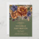 Elegant and stylish 90th birthday party invitation for women with rust/burnt orange and navy blue watercolor flowers and greenery on a hunter green background. Contact me for assistance with customisation or to request matching or coordinating Zazzle products.