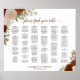 This beautiful autumn floral wedding seating chart has room for up to 250 names in alphabetical order. The rustic boho chic design features hand painted watercolor roses and flowers in shades of rust orange, coral peach, and burnt umber, along with sprigs of autumn leaves and fall garden foliage. The elegant script calligraphy title reads "please find your table" and there is space for your names and the wedding date below. Wonderful way to add beauty and style to your wedding reception while making it easy for your guests to find their tables.